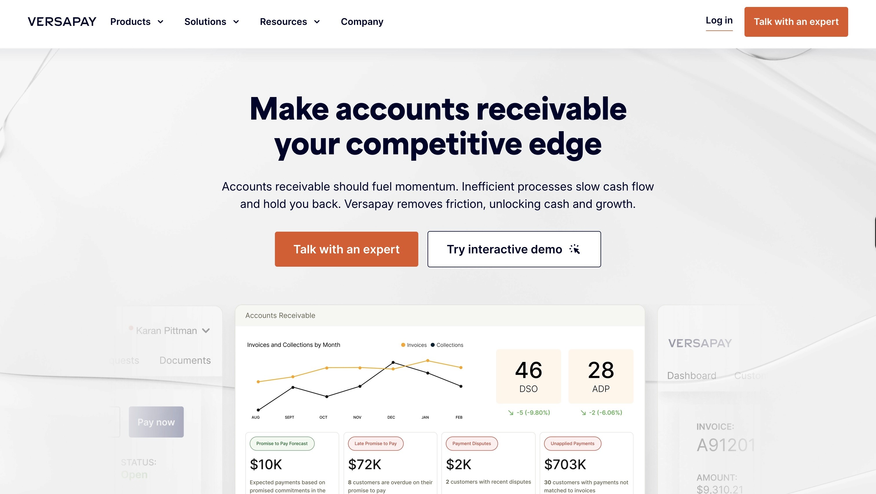 Versapay is a collections and invoicing platform founded in 2006, built around a digital invoice presentment and payment portal. Its core strength is offering flexible payment options through a self-service interface where customers can view invoices, select payment methods, and pay directly. For AR teams where payment friction causes more late payments than process gaps, Versapay addresses the problem at the point of payment rather than the point of collections.