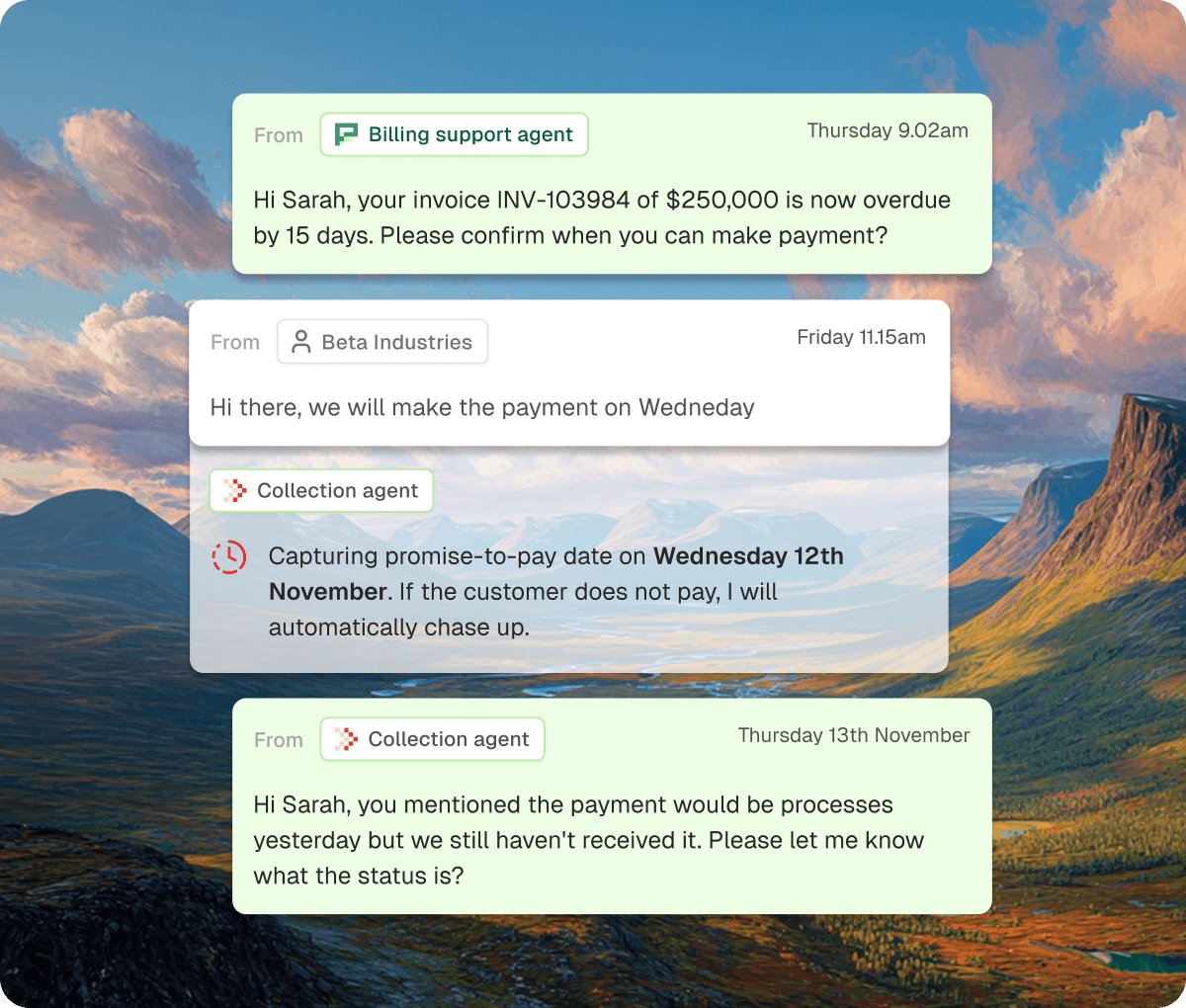 Prioritisation and personalisation: Messaging and follow-up sequences are tailored based on invoice size, customer behaviour, and account importance.